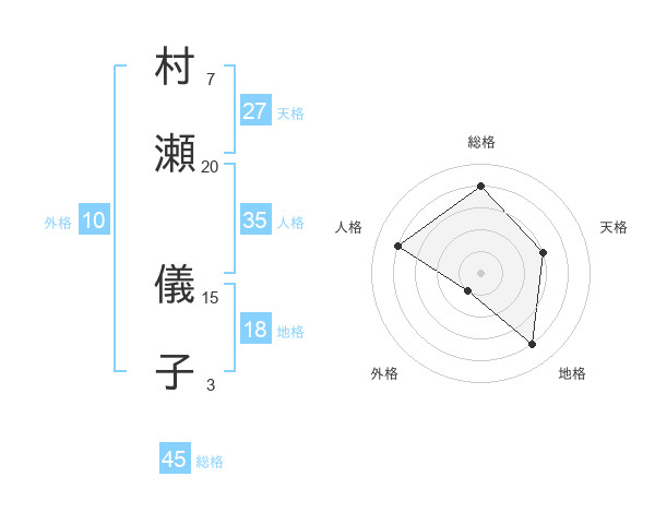 村瀬 儀子さんを姓名の画数から五運を鑑定