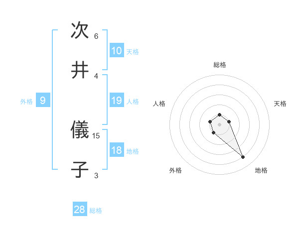 次井 儀子さんの総格は28画の1点!