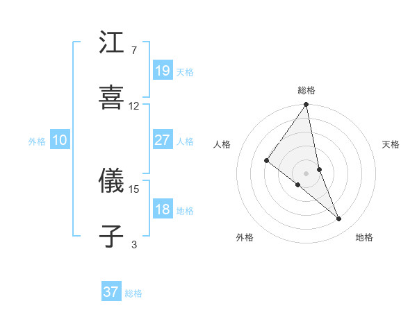 江喜 儀子さんを姓名の画数から五運を鑑定
