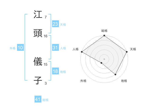 江頭 儀子さんの総格は41画の5点!