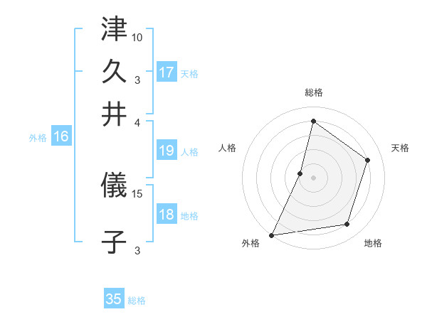 津久井 儀子さんの天格は17画の4点!