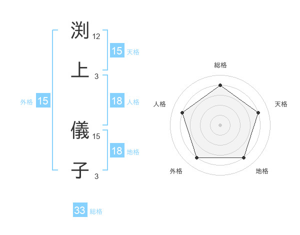 渕上 儀子さんの総格は33画の4点!