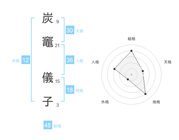 炭竈 儀子さんを姓名の画数から五運を鑑定