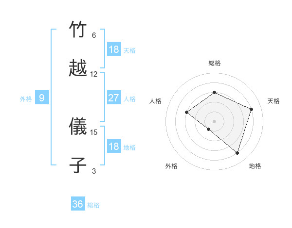 竹越 儀子さんの天格は18画の4点!