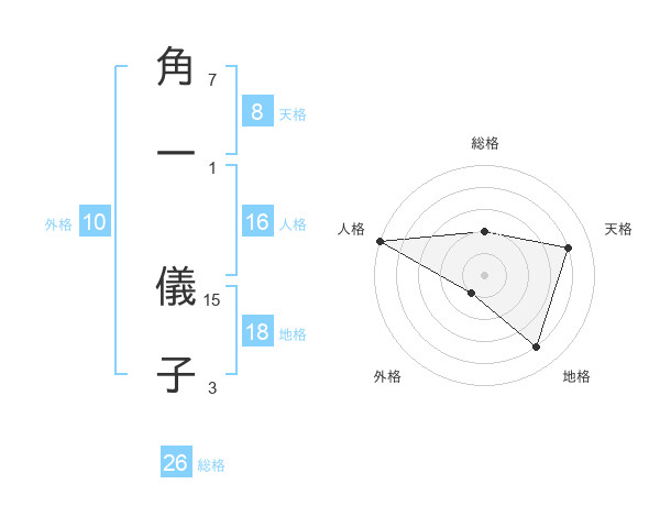 角一 儀子さんの天格は8画の4点!