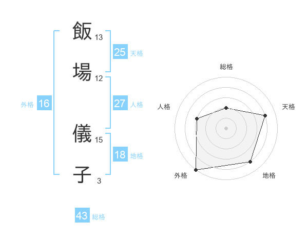 飯場 儀子さんの外格は16画の5点!