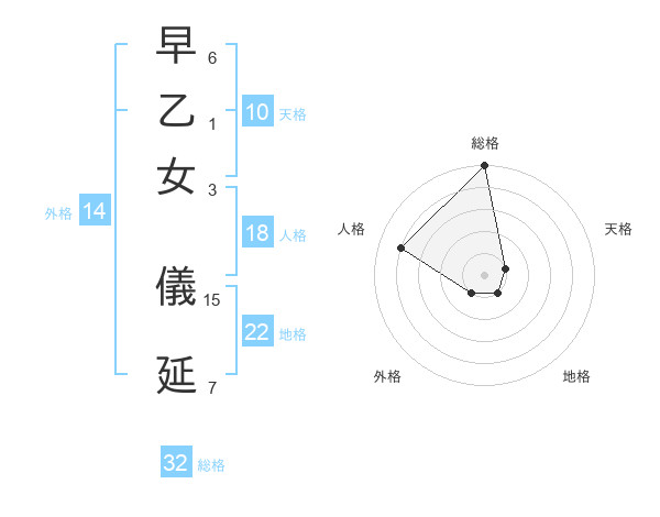 早乙女 儀延さんの総格は32画の5点!