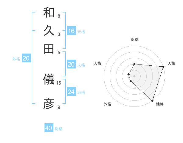 和久田 儀彦さんを姓名の画数から五運を鑑定