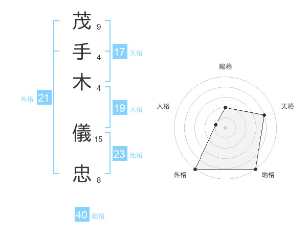 茂手木 儀忠さんを姓名の画数から五運を鑑定