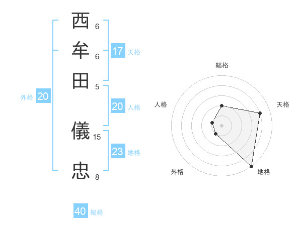 西牟田 儀忠さんを姓名の画数から五運を鑑定