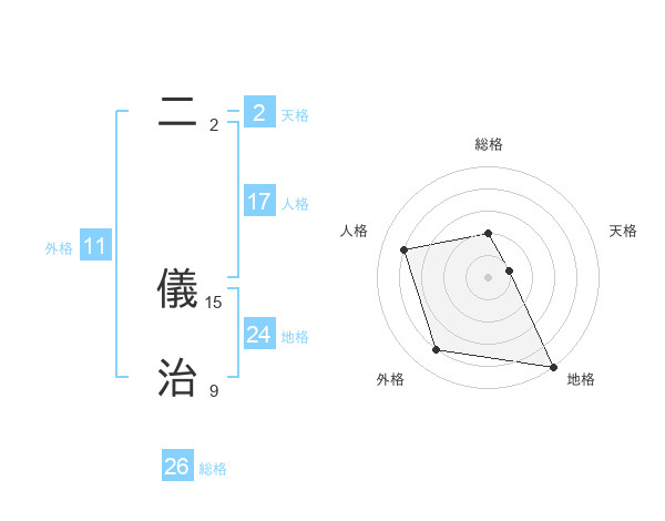 二 儀治さんの総格は26画の2点!
