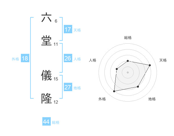 六堂 儀隆さんを姓名の画数から五運を鑑定