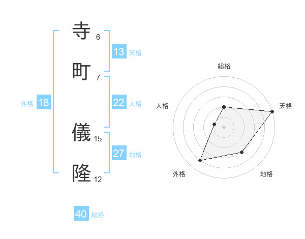 寺町 儀隆さんを姓名の画数から五運を鑑定