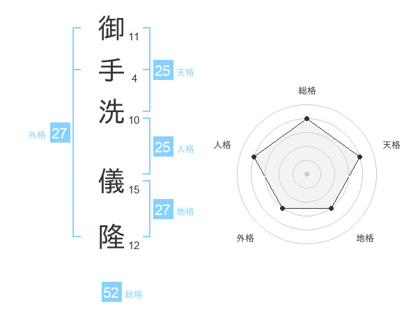 御手洗 儀隆さんを姓名の画数から五運を鑑定