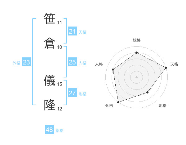 笹倉 儀隆さんの総格は48画の4点!
