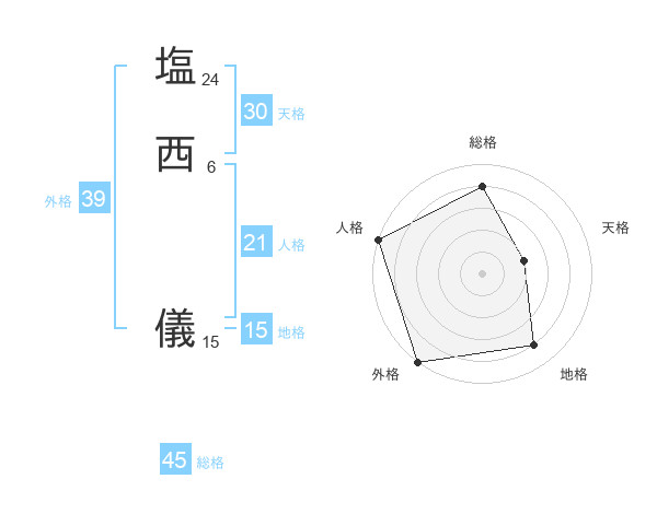 塩西 儀さんの外格は39画の5点!