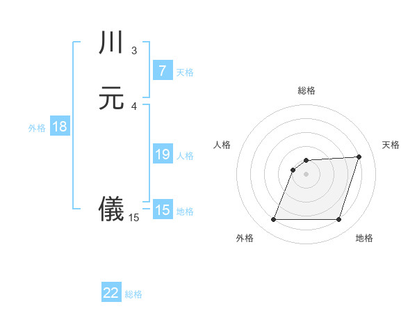 川元 儀さんの総格は22画の1点!