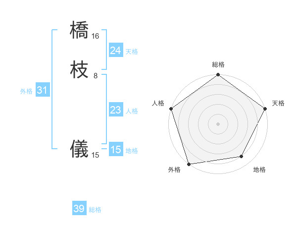 橋枝 儀さんの総格は39画の5点!