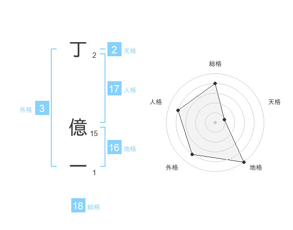 丁 億一さんの総格は18画の4点!