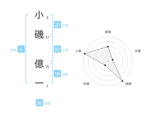小磯 億一さんの人格は32画の5点!