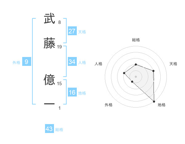 武藤 億一さんの地格は16画の5点!
