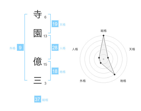 寺園 億三さんの総格は37画の5点!