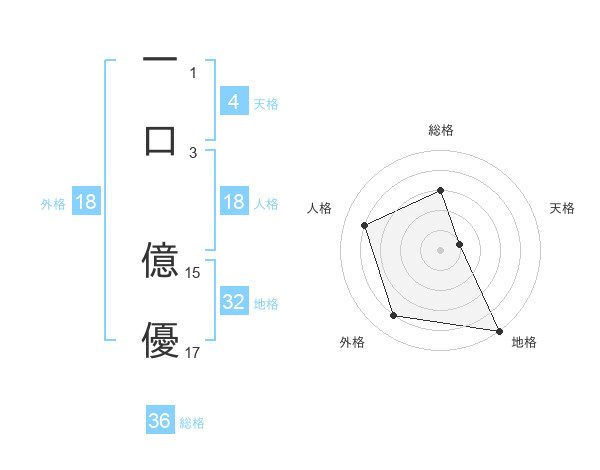 一口 億優さんの外格は18画の4点!
