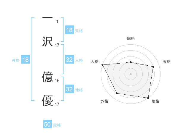 一沢 億優さんの総格は50画の2点!