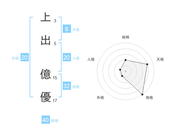 上出 億優さんの天格は8画の4点!