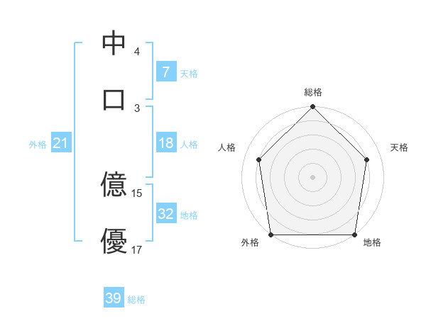 中口 億優さんの外格は21画の5点!