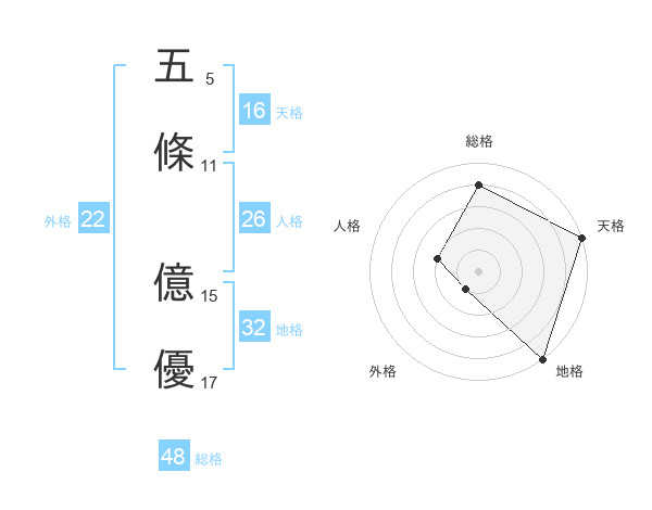 五條 億優さんの天格は16画の5点!