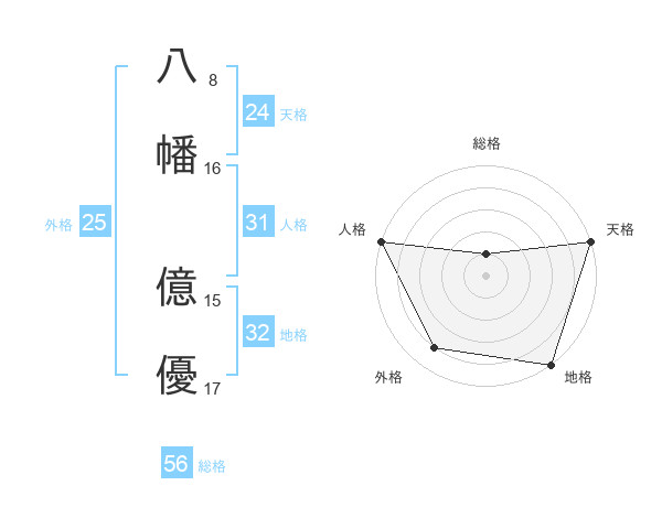 八幡 億優さんの天格は24画の5点!
