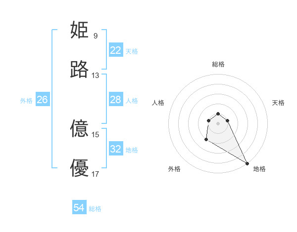 姫路 億優さんの総格は54画の1点!