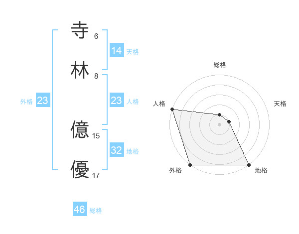 寺林 億優さんの外格は23画の5点!