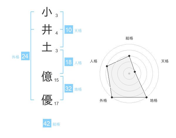 小井土 億優さんの地格は32画の5点!