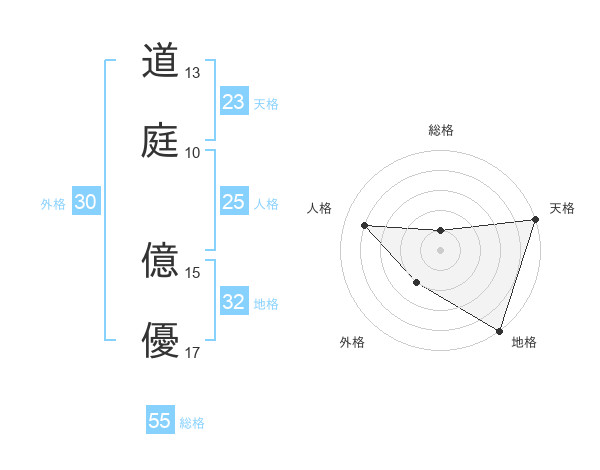 道庭 億優さんの天格は23画の5点!