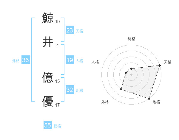 鯨井 億優さんを姓名の画数から五運を鑑定