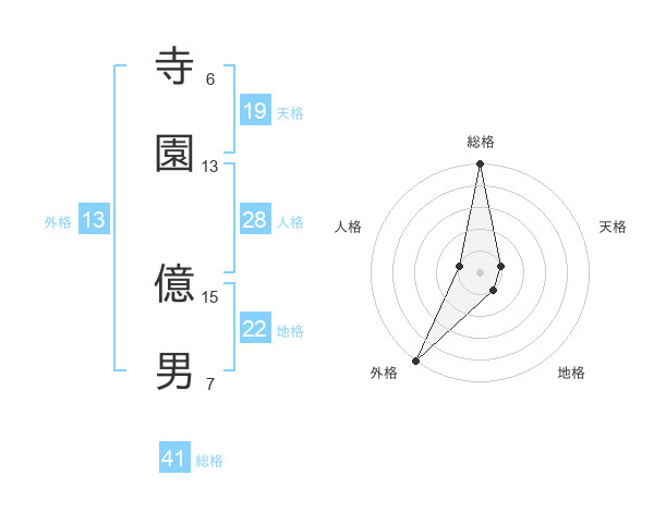 寺園 億男さんの外格は13画の5点!