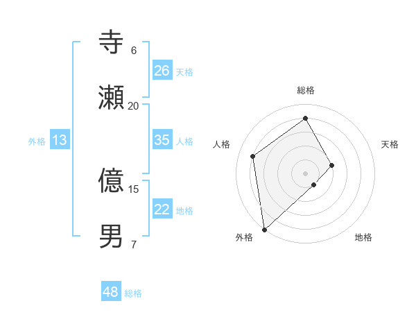 寺瀬 億男さんの総格は48画の4点!