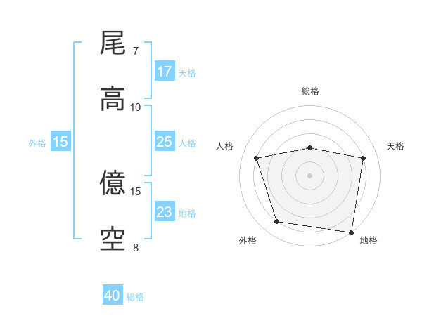 尾高 億空さんの天格は17画の4点!