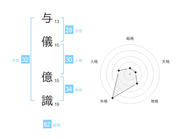 与儀 億識さんの外格は32画の5点!