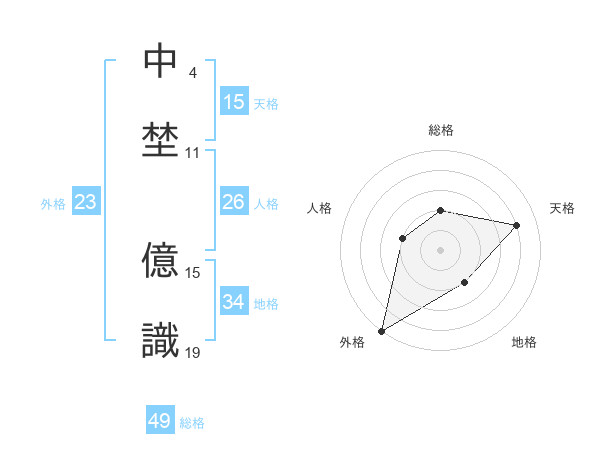 中埜 億識さんの天格は15画の4点!