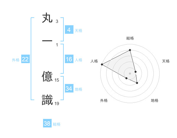 丸一 億識さんの総格は38画の4点!