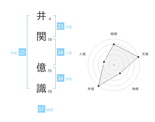 井関 億識さんの総格は57画の4点!