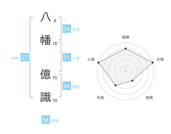 八幡 億識さんの天格は24画の5点!