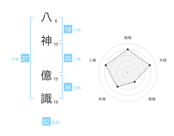 八神 億識さんの総格は52画の4点!