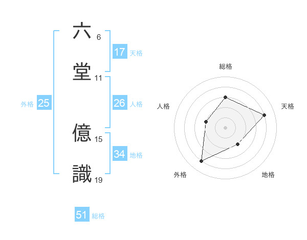 六堂 億識さんの総格は51画の3点!