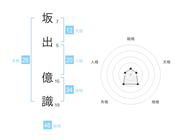 坂出 億識さんの総格は46画の1点!