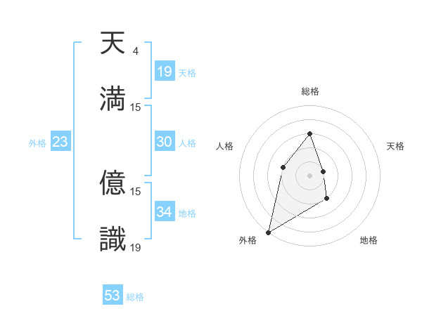 天満 億識さんの総格は53画の3点!