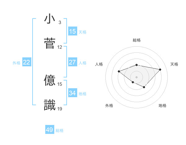 小菅 億識さんの天格は15画の4点!